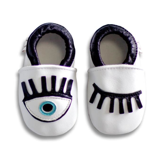 Bebe Cuir Souple Chausson Enfant Chaussures Cuir Souple Bebe Et Bambin Grand Motif De Gros Yeux Vilain Pantoufles A Fond Souple Blanc Achat Vente Chausson Pantoufle Soldes Sur