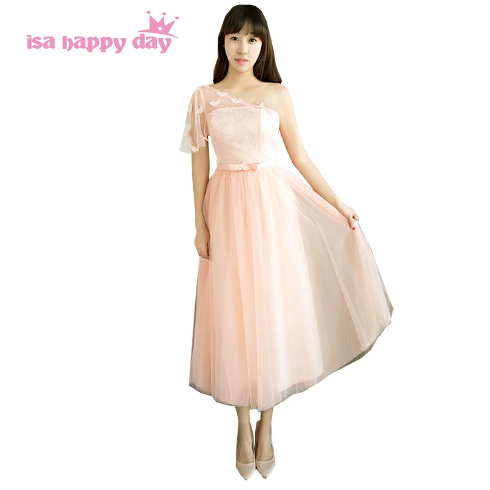 Filles The Longueur Une Epaule Courte Tulle Couleur Peche Demoiselle D Honneur Robe De Bal Demoiselles D Honneur Robes Robe Elegante Moins De 50 H4029 Aliexpress