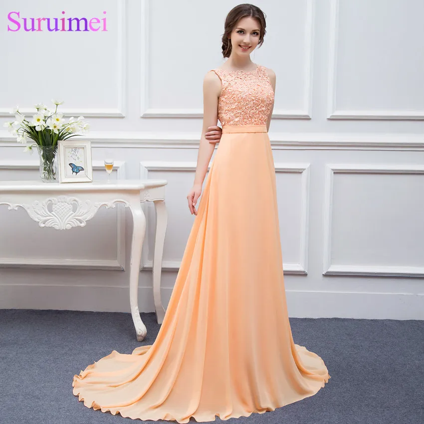 Cherie En Mousseline De Soie Peche Pas Cher Longues Robes De Demoisell Sposadresses