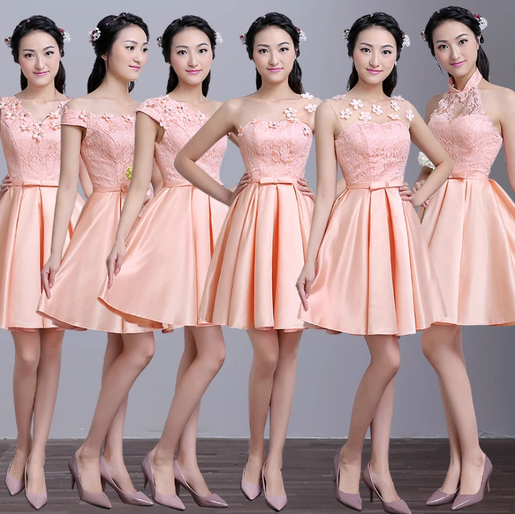 Robe De Soire Court Elegant Satin Demoiselle D Honneur Robe Pour Faire La Fete De Couleur Peche Robes Belle Bridemaids Robes Robe De Bal S36 Aliexpress
