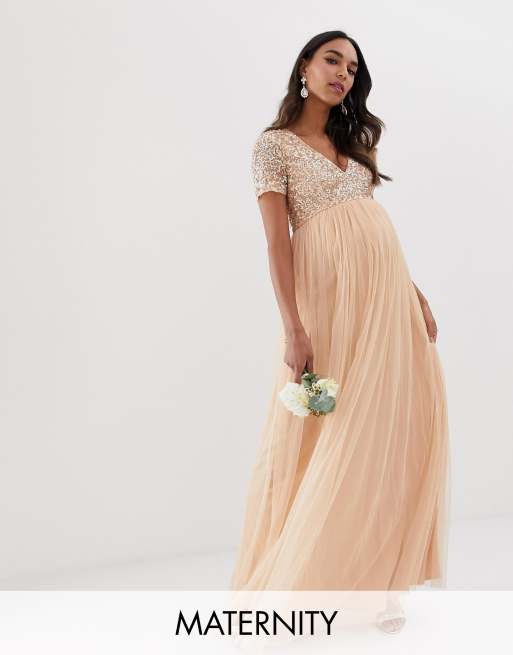Maya Maternity Robe De Demoiselle D Honneur Longue A Encolure En V Ornee De Sequins Delicats Peche Doux Evesham Nj