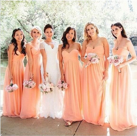 15 Concise Couleur Peche De Demoiselle D Honneur Robes Avec Images Reelles Ruche En Mousseline De Soie Robe Pour Demoiselle D Honneur Robe De Festa De Casamento Aliexpress