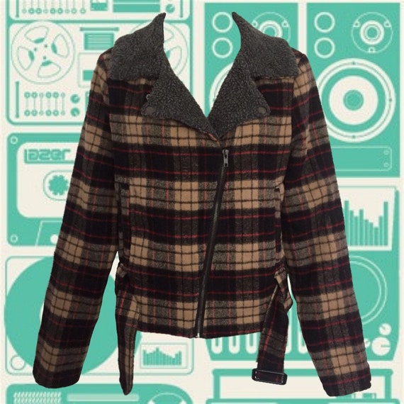 Vintage 90 S Plaid Moto Style Jacket Beige Black Red Etsy