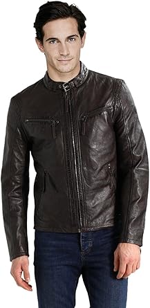 Amazon Com Belt Coller Vintage Style Slimfit Classic Moto Geniune Leather Jacket Dark Brown Clothing