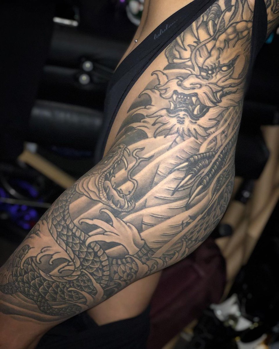 Half Sleeve Dragon And Monkey King Tattoo Chronic Ink
