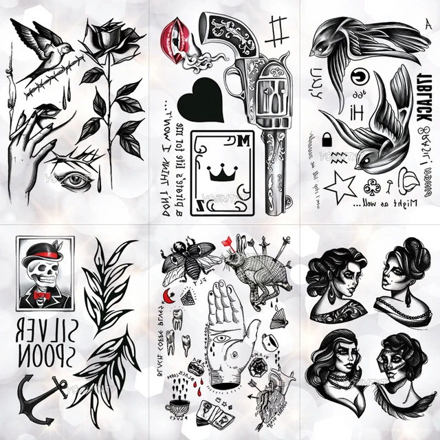 Old School Designs Of Skull Birds And Black Rose Designs Fake Temporary Water Transfer Tattoo Stickers No 1 00 Removable Fake Temporary Water Transfer Tattoo Stickers