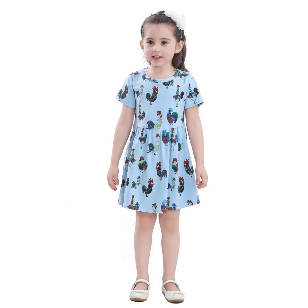 Bebe Petites Filles Robe Ete Decontracte Vacances Fete Coq Poulet Imprimer Enfants Princesse Robes 1 7 Ans Vetements Pour Enfants Bleu Aliexpress