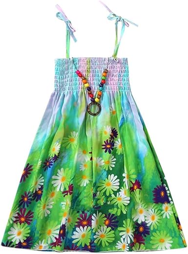 Lubity Enfant Robe Fille Arc En Smocks Licou Enfants Filles D Ete Robe De Plage En Vacances Impression Avec Collier Collier Amazon Fr Vetements Et Accessoires