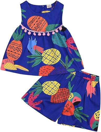Zhmei Robe D Ete Enfant En Bas Age Bebe Filles Sans Manches Impression Ananas Glands Tops Shorts Tenues Robe De Fille Mariage Amazon Fr Vetements Et Accessoires