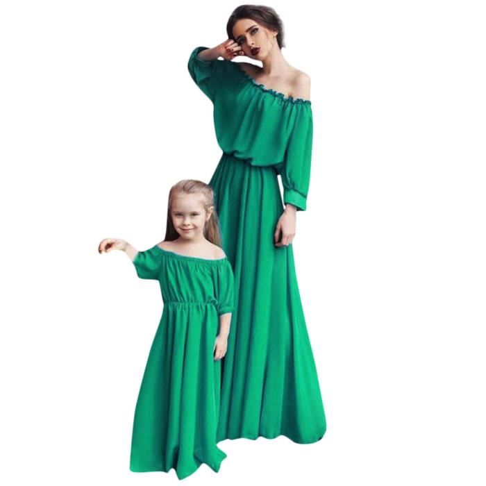 Pilerty Nouvelle Robe De Famille Fille D Ete Longue Robe Enfants Filles Vetements Decontractes Lzpgn Vert Vert Achat Vente Robe Cdiscount