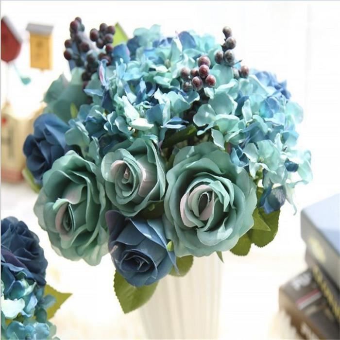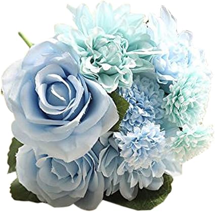 Bouquet De Fleurs Artificielles En Soie Dahlias Et Roses Pour Mariage Decoration Maison Li Hua Cat Plastique Bleu 12 12 Amazon Fr Cuisine Maison