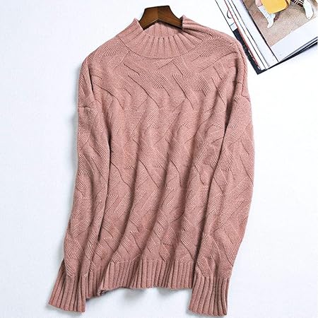 Femmes Pull En Tricot D Hiver Avec Col Haut Rose Christelle
