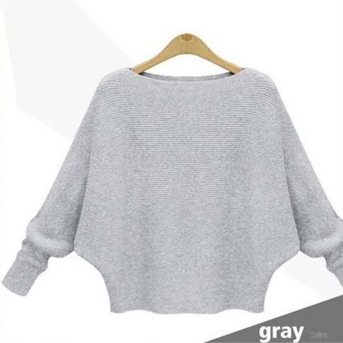 Labulad Pulls D Hiver Pour Femmes Chemisier Haut Decontracte A Manches Chauve Souris En Tricot A Col Rond Gris Gris Achat Vente Chemisier Blouse Cdiscount