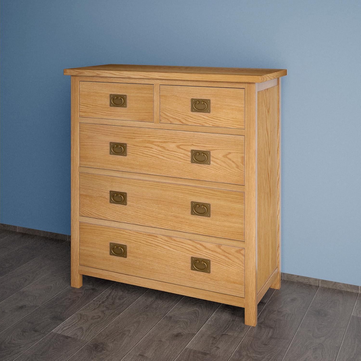 Cuisine Maison Commodes Cuisine Bureau Type A Salle De Bain Salon Keinode Commode 3 Grands Tiroirs Et 2 Demi Tiroirs En Bois De Chene Massif Finition Ciree Poignees Metalliques Pour Chambre A