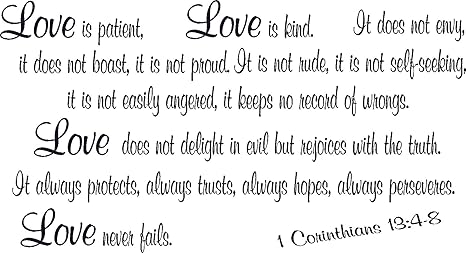 Amazon Com 1 Corinthians 13 4 8 Bible Verse Wall Decal Love Patient Kind Not Envy Always Hopes Perseveres Never Fails Our Inspirational Christian Scripture Wall Arts Are Made In The Usa Kitchen Dining