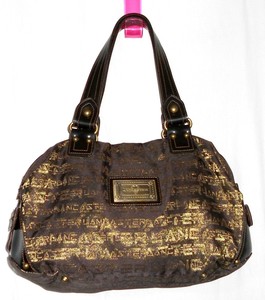 Lancaster Sac A Main Toile Brun Fonce Dore Garnitures Cuir Marron Tbe Ebay