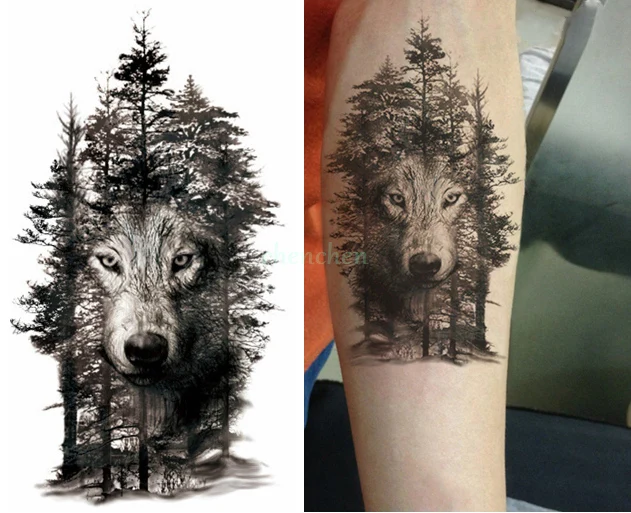 Etanche Tatouage Temporaire Autocollant Loup Animal Forest Arbre Autocollants De Tatouage Flash Tatoo Faux Tatouages Pour Femmes Hommes Bras Tatouages Aliexpress
