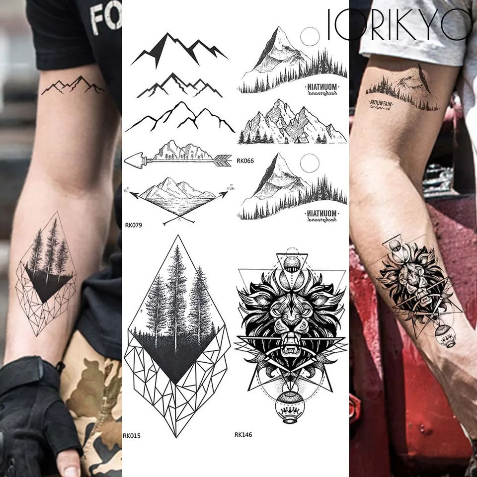 Fleche Dale Temporaire Tatouage Hommes Bras Geometrique Montagne Noir Tatouage Autocollants Femmes Corps Mains Etanche Tatoos Pin Arbre Maquillage Aliexpress
