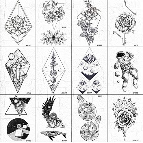 Tatouages Floraux 3d Losange Geometrique Temporaires Hommes Noir Bras Arbre Montagne Fleur Tatoo Autocollants Corps Cheville Cosmos Tatouage 10 6cm 12pcs Amazon Fr Beaute Et Parfum