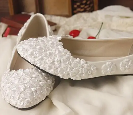 Chaussures De Mariage En Dentelle Ivoire Pour Mariees Chaussures Basses Sans Talon Pompes De Mariage Faites A La Main Grandes Remises 18 Aliexpress
