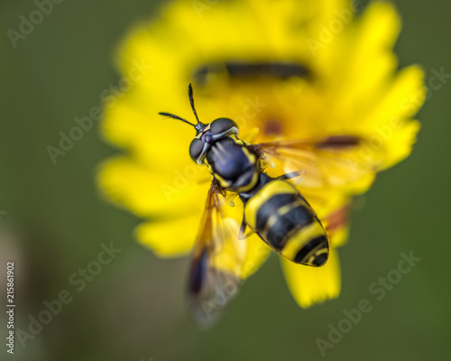 Photo D Un Insecte Volant Qui Ressemble A Une Petite Guepe Ordre Des Hymenopteres Qui Butine Un Bouton D Or Fleur Jaune Herault France Edithb Mes Photos De L Aveyron Et La Lozere