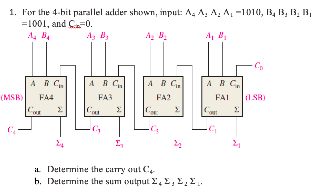 Solved 1 For The 4 Bit Parallel Adder Shown Input A Chegg Com