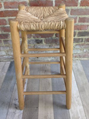 Tabouret En Bois Et En Paille Annees 50 En Vente Sur Pamono