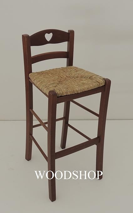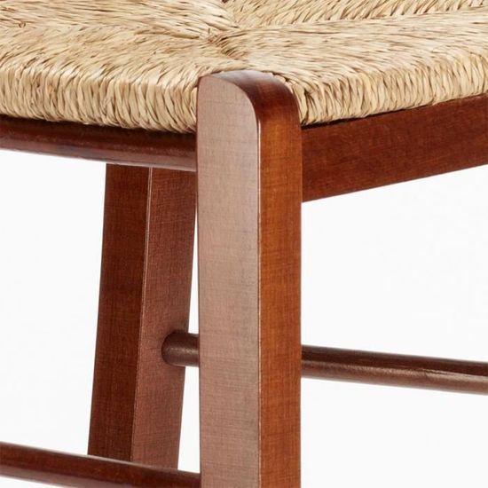 Tabouret Chaise Snack Bois Massif Avec Dossier Assise Paille Couleur Noyer Fonce Amazon Fr Cuisine Maison