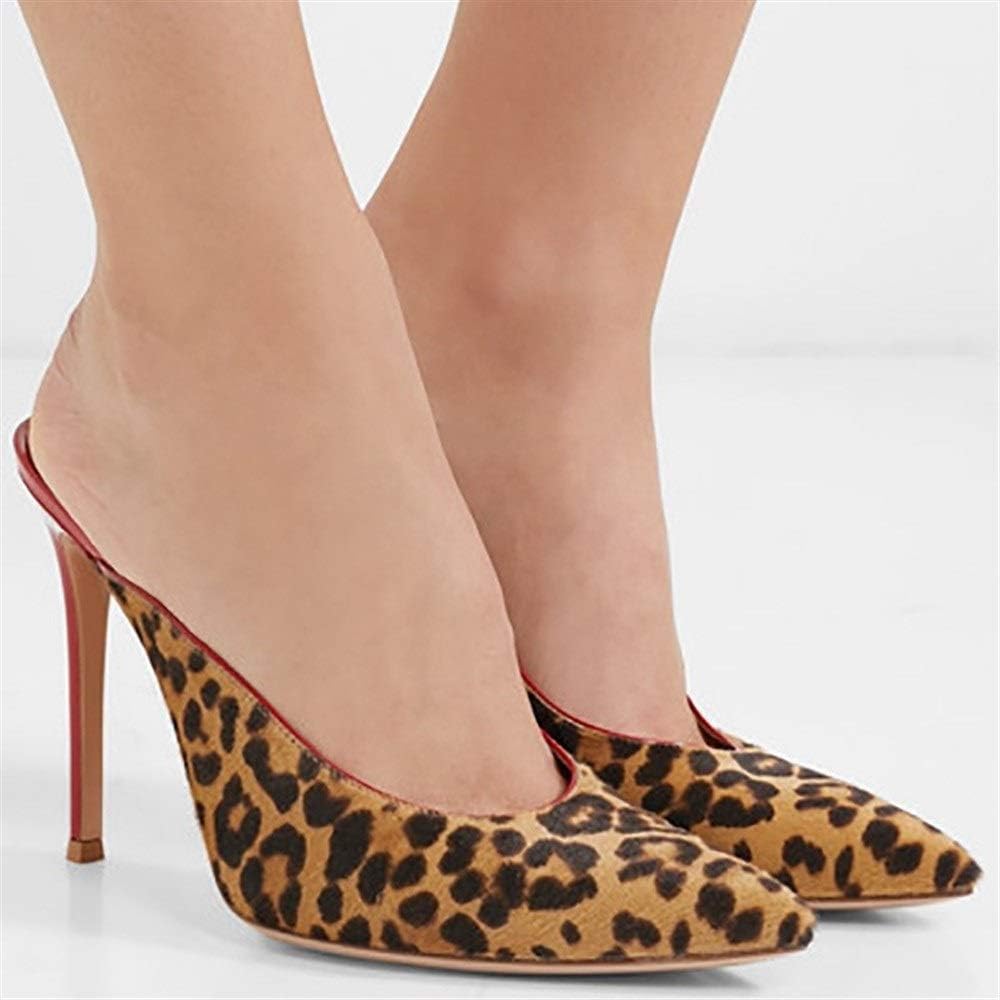 Xianggao Mules A Talon Aiguille Pour Femmes Avec Bout Pointu Glissant Sur Des Sandales A Talons Hauts Coulisses Escarpins En Cuir Synthetique Vernis Et Motif Leopard Chaussures A Talons Hauts Chaussures Et