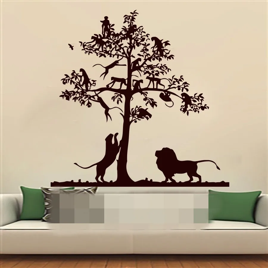 Lion Arbre Singe Safari Paysage Enfants Vinyle Stickers Muraux Autocollant Garcon Fille Pepiniere Chambre Decor A La Maison Art Peintures Murales Pochoirs Aliexpress