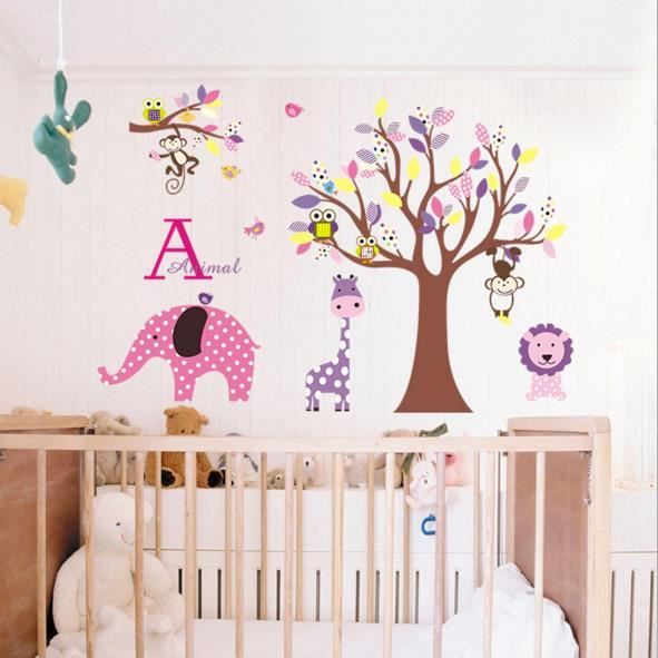 Stickers Muraux Enfant Arbre Et Les Animaux Hiboux Singe Elephant Ect Achat Vente Stickers Cdiscount