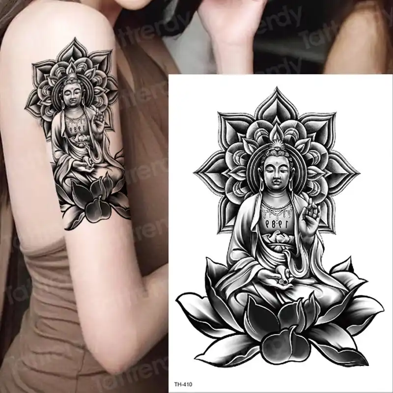 Environnementale Hommes Cool Etanche Grand Bras Temporaire Tatouage Bouddha Lotus Fleur Conceptions Pulverisation Faux Transfert Autocollants Aliexpress