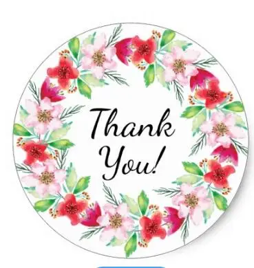 1 5 Pouces Jolie Couronne De Fleurs Rose Aquarelle Merci Autocollant Rond Classique Aliexpress