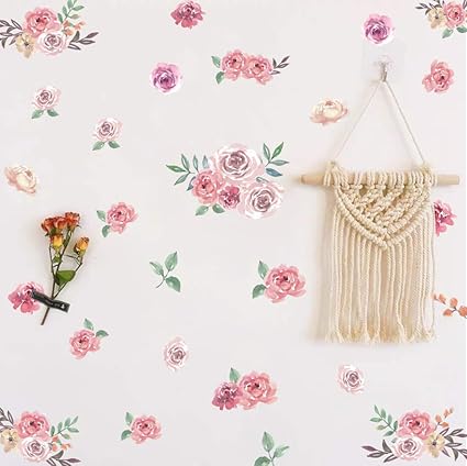 Kairne 47 Pieces Sticker Mural Fleurs Rose Aquarelle Autocollant Muraux Rose Et Verte Feuille Floral Roses Sticker Mural Pour Filles Chambre Romantique Autocollant Pour Fenetre Salon Mariage Fete Deco Amazon Fr Bricolage