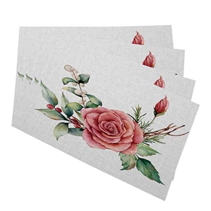 Pack Linge De Table U4ixs Napperons De Fleurs Roses Bouquet D Aquarelle Avec Rose Et Snowberries Tapis De Table Lavables Antiderapan Achat Vente Set De Table Cdiscount