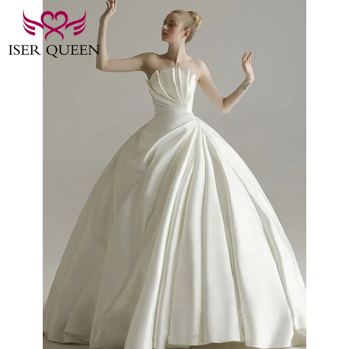 Robe De Mariee Simple En Satin Ivoire A Plis Francais Elegante Et Gracieuse Robe De Mariee Simple Sans Bretelles A Lacets Wx0156 Aliexpress