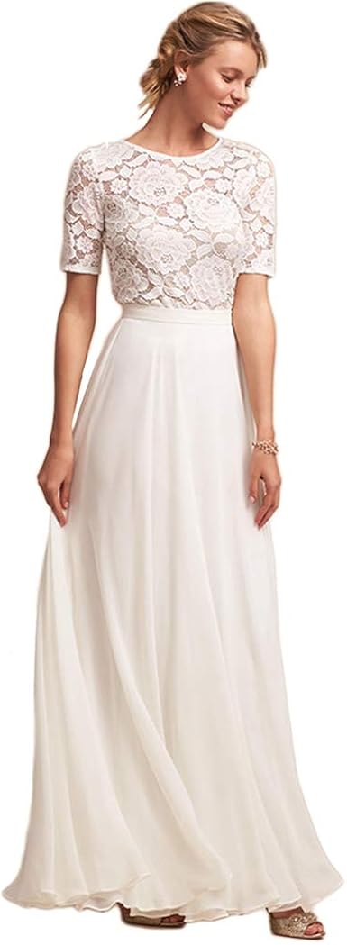 Yaonai Elegante Robe De Bal Du Soir Dentelle Robe De Mariee Demi Manche Robe De Mariee Simple Robe De Mariee White 16 Amazon Fr Vetements Et Accessoires