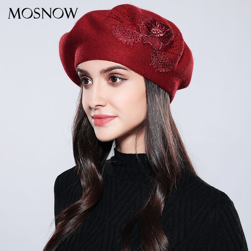 21 Mosnow Bonnet Femme Women Beret Cotton Wool New Knitted Fashion Flower Autumn 17 Winter Hats For Women Caps Mz741 From Handofart 15 06 Dhgate Com