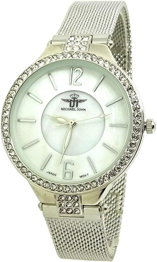 Jolie Montre Femme Ronde Blanc Argent Michael Fine Soiree Bijoux Strass Ice Amazon Fr Montres