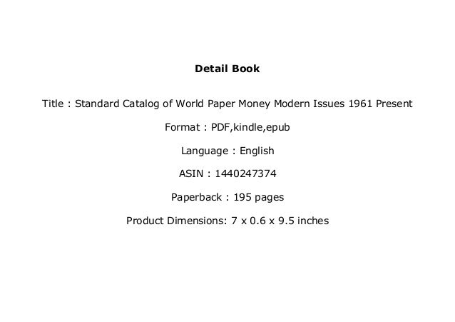 DownloadStandard catalog of world paper money modern issues 1961 present pdf Free Pdf Download 16 32 d d documents and settings simon WINDOWS Queued pass shot commands are now deleted when a fumbled catch occurs Standard catalog of world paper money modern issues 1961 present pdf Download Standard catalog of world. Accessrestricteditem true Addeddate 1111 Boxid IA Camera Canon EOS 5D Mark II City Iola (Wisconsin) Donor allen_countydonation Edition. The World Paper Money Price Guide lists values for nearly 70,000 world notes spanning more than six centuries of history Also included are images, specifications and other important details for.