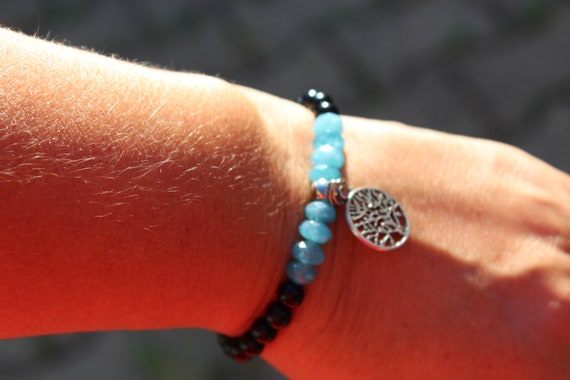 Bracelet Femme Bracelet Obsidienne Aigue Marine Arbre De Etsy