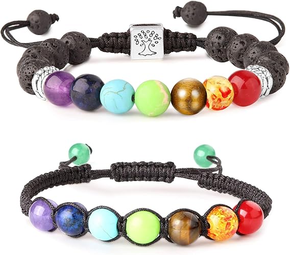 Yadoca 2 Pcs 8mm Bracelet De Pierre Pour Homme Femme 7 Perles De Chakra Pierre D Oeil De Tigre Pierre De Lave Ajustable Bracelet Corde Amazon Fr Bijoux