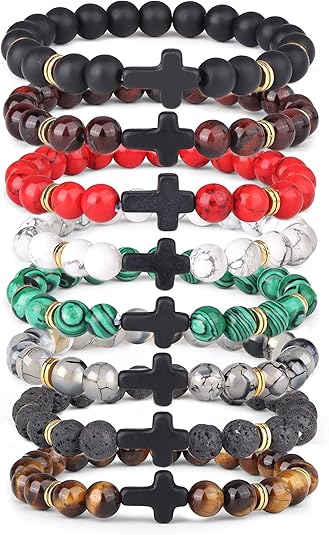 Yadoca 8pcs 8mm Pierre Bracelets Boules Pour Homme Femme Bracelet Pierre Naturelle Bracelet Oeil De Tigre Yoga Croix Bracelet Elastique Amazon Fr Bijoux