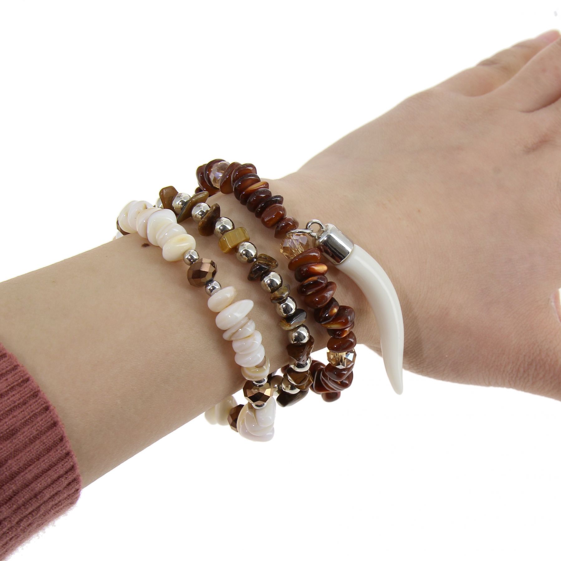 Grossiste Bracelet Femme Extensible A Perles De Pierre Et Corne Vickie