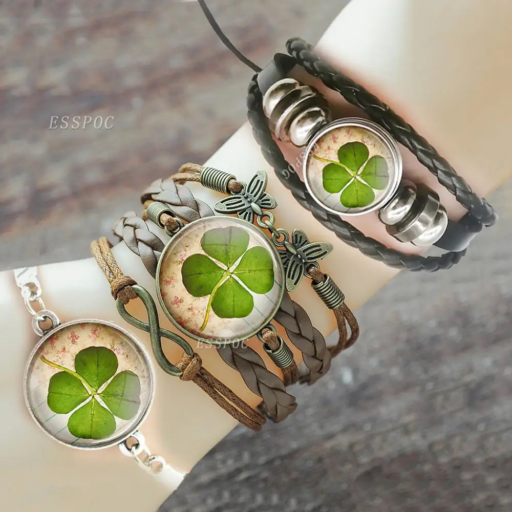 Trefle A Quatre Feuilles Chanceux Retro Artisanal Bronze Marron Bracelet Punk Verre Cabochon Bijoux Porte Shamrock Bracelet Femmes Cadeaux Aliexpress
