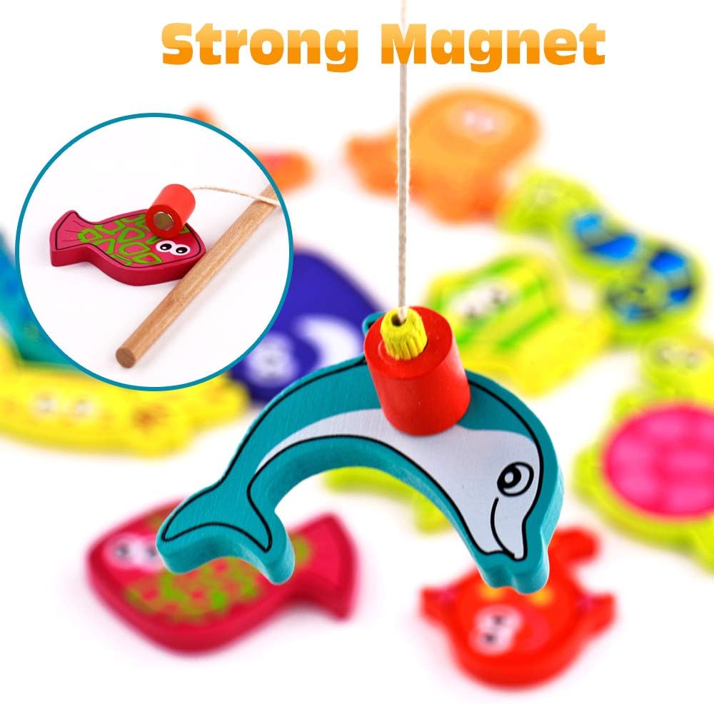 Tonze Jeu De Peche Jouet En Bois Magnet Enfant 15 Pcs Aimant De Peche Jouets Pour Enfants Jeux Educatif Jouet Enfant Garcon Fille 3 4 5 Ans Avec Aimant Jouet Canne A