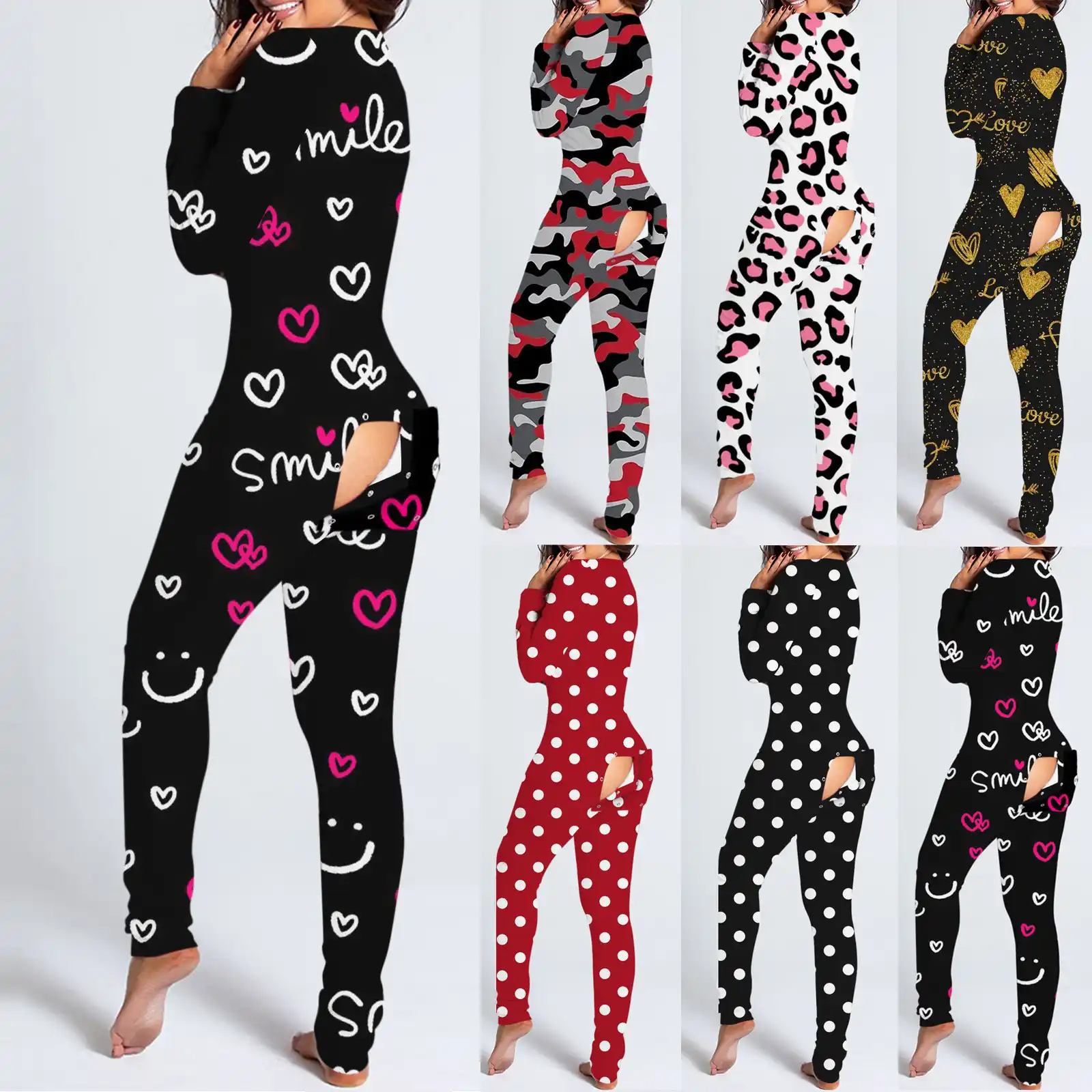 21 Nouvel An Noel Fonctionnel Boutonne Rabat Imprime Adultes Pyjamas Costume Femmes Manches Combinaisons Detachables Aliexpress
