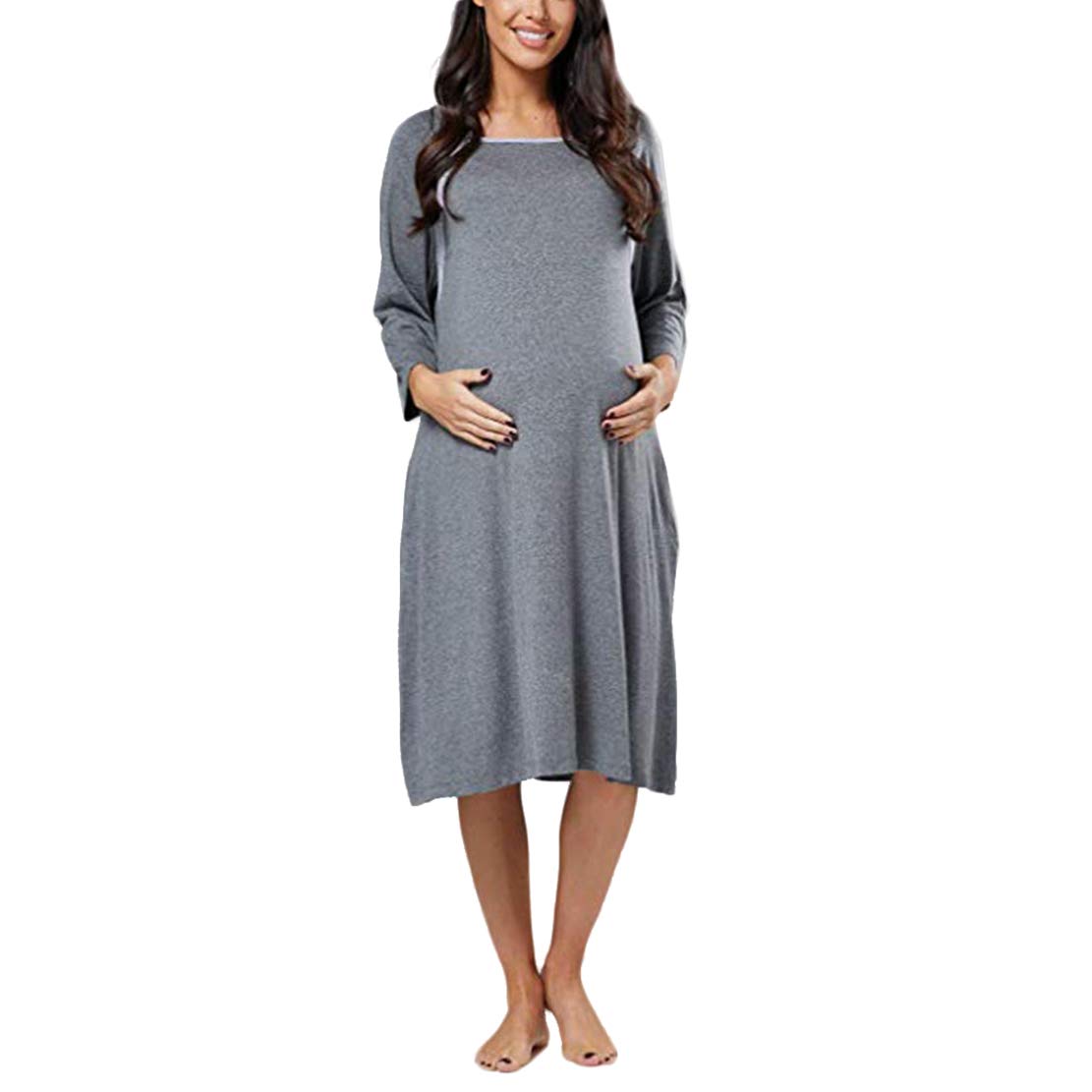 Chemise De Nuit Allaitement Maternite Boutonnee Robe Grossesse Coton Pyjama Femme Enceinte Manche Longue Vetements De Nuit Automne Chemises De Nuit