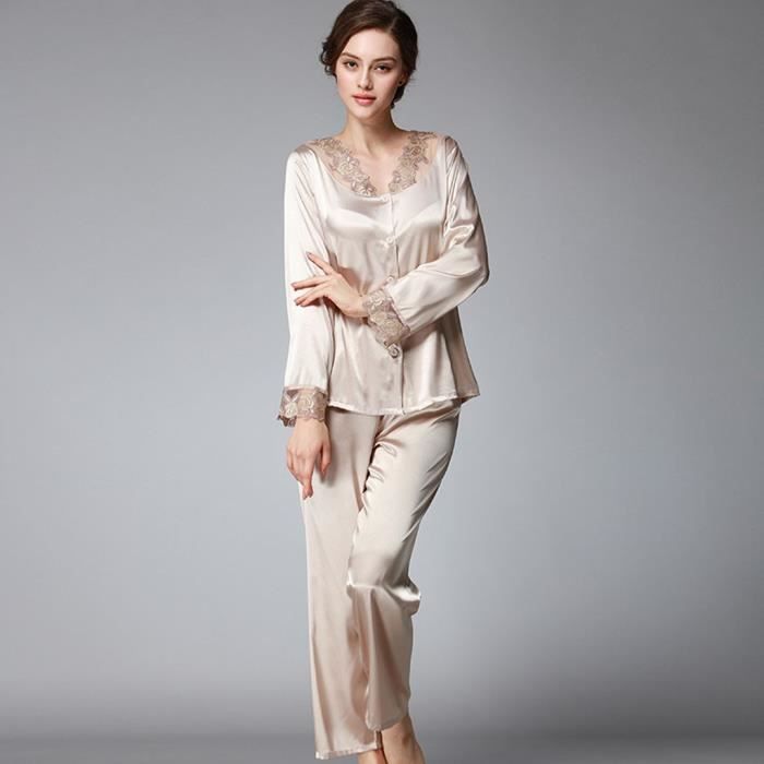 Ensemble De Pyjamas En Dentelle Boutonnee En Satin A La Mode En Soie Pour Femmes Pyjama Femme Kaki Achat Vente Pyjama Soldes Sur Cdiscount Des Le Janvier Cdiscount