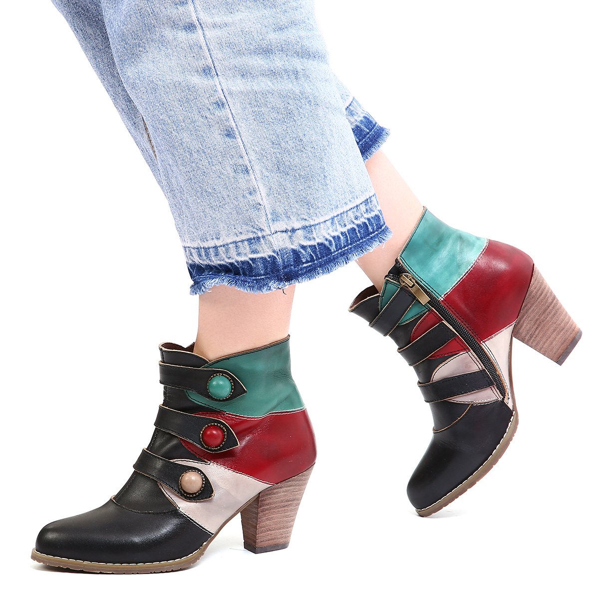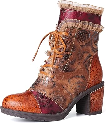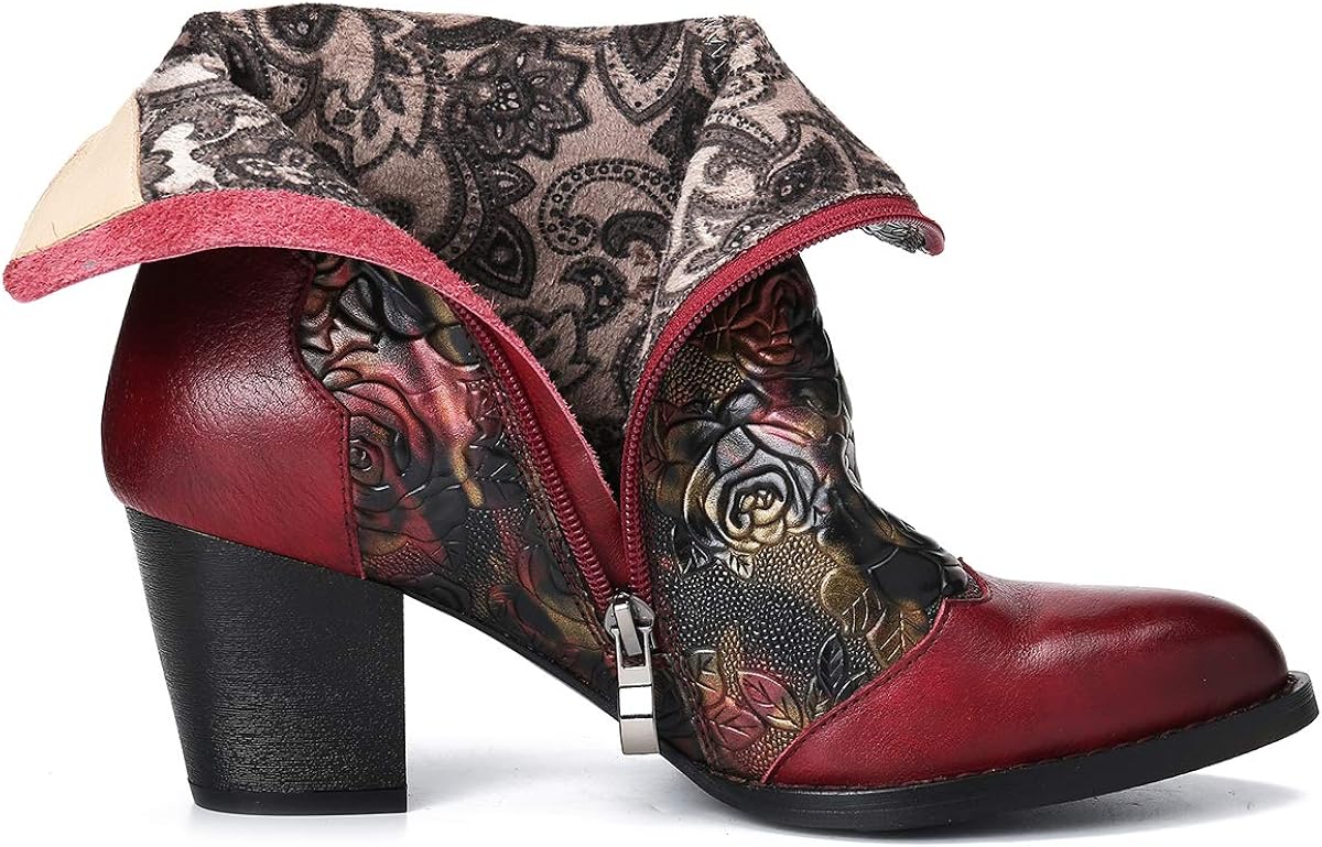 Socofy Bottes Cuir Femmes Chaussures De Ville Hiver A Talons Hauts Moyens Confortable Bottines Boots Santiags Originales Habillees Automne 18 Design Original A Style Boheme Marron Rouge Amazon Fr Chaussures Et Sacs